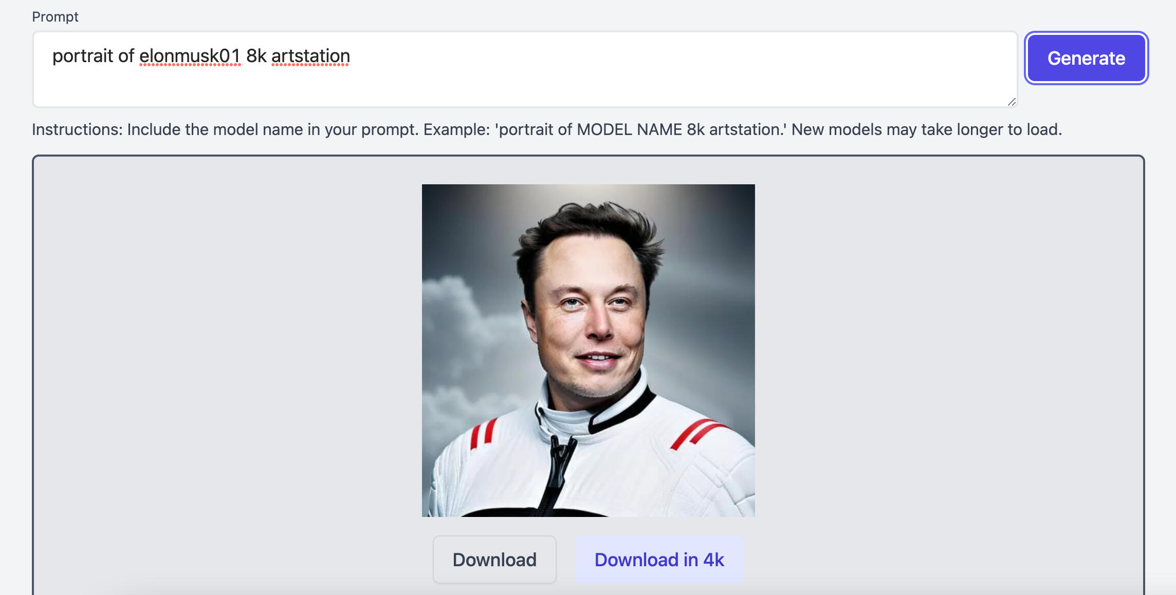 Once your model is created, you can host it for others to use.Users can input any prompt to create new images using your custom model.